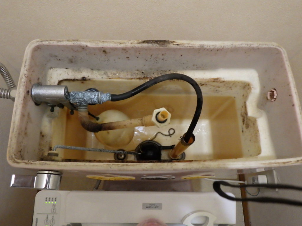日頃から大変お世話になっております、U不動産様管理物件S様邸借家のトイレ修理を行わせていただきました。ロータンク内のフロートバルブの不良で、水が止まらない状況でした。フロートバルブを交換して無事に修理完了しました。かなり古いトイレになりますので、次は新品のトイレに交換した方が良いかもしれませんね(^^) U不動産様、またよろしくお願いします☆