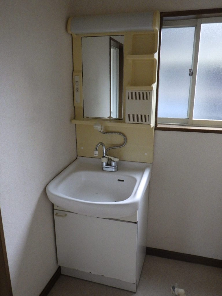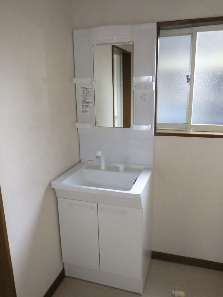 U不動産様の物件の洗面化粧台の交換工事を行いました。始めは、水栓のみを交換する予定でしたが、古い洗面化粧台の水栓は値段が高くなってしまいます。洗面化粧台のシャワー水栓って、何故か高いんです(^^;)(定価で5~7万円くらいします)なので、水栓交換ではなく、洗面化粧台をまるごと新しくする事になりました。水栓だけで高くなってしまうなら、洗面化粧台ごと交換してしまった方がいいですね(*^_^*)