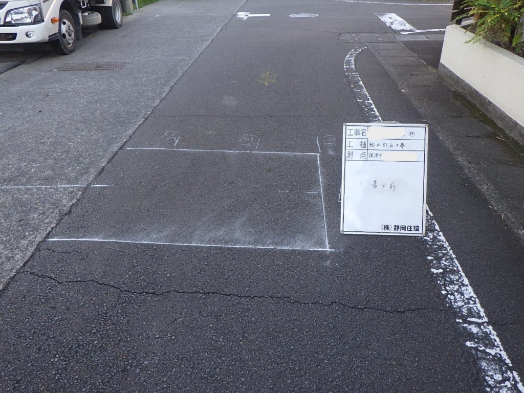 一見普段と何ら変わりのない水道引込工事かと思われそうですが、着工前の写真をよく見てください。なんてことでしょう・・・、道路内の本管分岐箇所から宅地内の間に幅3Mボックスカルバート(水路)があるではないですか・・・。おまけにこの現場は焼津市の水湧エリア。確実にハマる大変な工事になると分かりきっている現場でしたので、工事前日の夜は考え込みすぎてなかなか眠りにつけませんでした。工事手順を考えたり、トラブル発生時にはどう対処するかシュミレーションしたりと・・・布団に入ってからそのようなことを考え始めてしまったら簡単に眠れる訳がありません。工事の朝までメンタルやられている感じではありましたが、いざ工事を着手したらそんなことはいつまでも言っていられません。お客様のために、ご近所様に迷惑をおかけしないために、スタッフ一同お昼ご飯も食べずにノンストップで働きました!!案の定湧き出る水を水中ポンプで処理するのに苦労しましたし、分岐した給水管を伏せ越し(水路の下をとおす)させるのにも大変苦労しましたしが、皆の気合いと頑張りで無事に1日で工事完了いたしました(^^)スタッフの皆、猛暑の厳しい中で本当に良く働いてくれました!!ありがとう!!