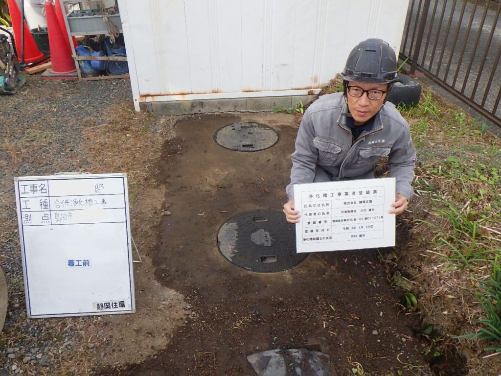こちらはご新規で島田市K様邸の合併浄化槽転換工事を行わせていただきました(^^) 既設の単独槽を撤去するのに土間コンクリートを斫るのですが、浄化槽の上部スラブと駐車場の土間が2層になっていたためハツリ作業に苦労しましたが、それ以外は何事も無く無事に工事完了いたしました!! K様、この度は弊社に浄化槽転換工事のご依頼いただきありがとうございました♪今後も水廻りでお困り事がありましたらお気軽にご相談ください(^^)