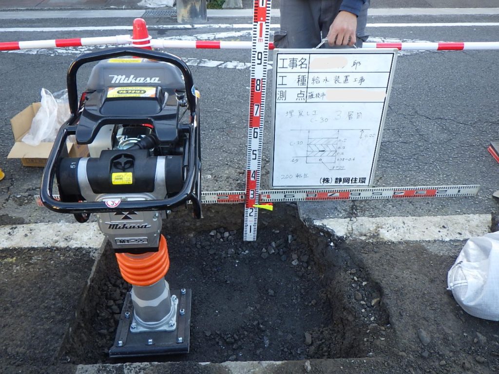 日頃から大変お世話になっておりますA工務店様案件S様邸の水道引込工事を行わせていただきました(^^) 今回の引込工事ですが、単純に新規で水道の引込ではなく、既設13mm(鉛管)を撤去/閉栓してその横に新設20mm(PP)を引込する工事でした。市町村にもよりますが藤枝市様の場合、新築を建てる際に既設の給水管が13mmや鉛管ですと基本NGです。新たに20mmで引込しなおしてと指示をいただきます。今回はそのパターンの水道引込工事でした。 今回の工事、厄介なトラブルが発生しました。既設13mmサドル分水栓のコックが老朽化?固着?で締まらず、止水できませんでした。そのため水道局様にも事情を説明して本管の水を一時的に止めていただき、その間に閉栓作業を行わせていただきました。弊社が悪いわけではないですが、水道局の皆さま、ご近所の皆さま、いろいろとご迷惑おかけしてすみませんでした。皆さまのご協力のおかげで工事は無事に完了いたしました!!(ちょっと時間がオーバーしてしまいましたが) A工務店様、施主のS様、この度は弊社に水道引込工事のご依頼いただきありがとうございました(^^)この後、住宅新築工事の宅内給排水工事も弊社で施工させていただきます!!S様にとって『大切な家の新築工事』なので、責任もって丁寧で完璧な水道工事をさせていただきますね!!新築の完成が今からとても楽しみです!!