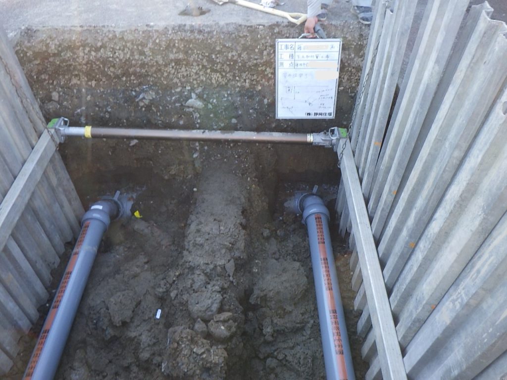こちらは藤枝市下水道課様よりご依頼いただいた、下水取付管設置工事を行わせていただきました(^^)下水道課様からのご依頼、本当にありがたいことです!! 下水本管が深さ2.1Mでしたので、矢板工を施し無事に工事完了いたしました!!深さもあって水も湧き少し大変でしたが、予定通りの時間で工事できたので良かったです!! 藤枝市下水道課様、この度は弊社に『取付管設置工事』のご依頼いただきありがとうございました(^^)今後ともよろしくお願い致します♪
