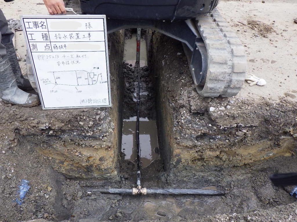 藤枝市Y様農地の給水引込工事を行わせていただきました(^^) Y様はご新規でご近所にお客様です。こうして地元のお客様から頼りにしていただけるは本当にありがたいことです♪ 今回、分岐元の配管が25mmのPP管からの分岐でしたので、いつものサドル分水栓ではなくポリ継手(PE継手)を使っての分岐作業をさせていただきました。工事中に側溝を流れる水が堀穴に少しだけ流れてきて少し苦労しましたが、水中ポンプで排水しながら作業しましたので、無事に引込工事を完了いたしました!! Y様、この度は弊社に水道引込工事のご依頼をいただきありがとうございました。今後も水廻りでお困り事がありましたらお気軽にご相談ください!! 弊社が引込させていただいた水でおいしい作物がたくさん収穫できることを、心から願っております☆